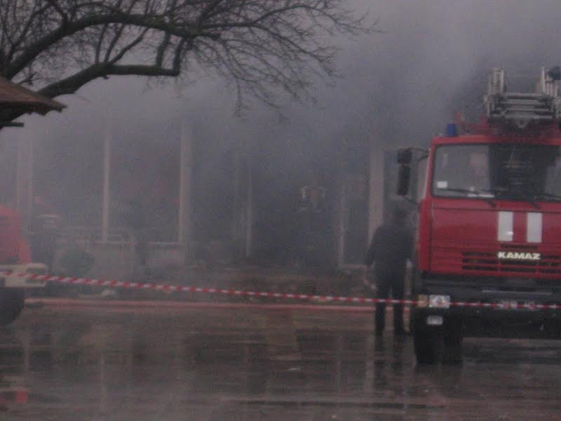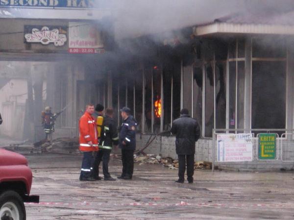Наразі біля універмагу працює кілька пожежних машин, їм на допомогу під'їжджають інші. Але вогонь вже перекинувся на другий поверх будівлі, навкруги все у їдкому диму.