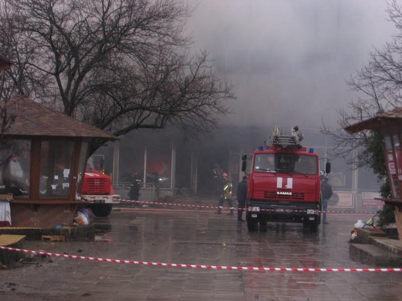 На проспекті Свободи в Ужгороді продовжують гасити пожежу в універмазі “Україна”. Загорання сталося вранці, коли перед відкриттям у магазині почали працювати прибиральниці – про це розповів журналісту “Про Заходу” орендар однієї торгових точок в “Україні”. Поруч із ним стоїть заплакана жінка, показує: там, на першому поверсі, зараз догорає увесь її крам. “Прибиральниці казали, що зранку в магазині все було нормально.