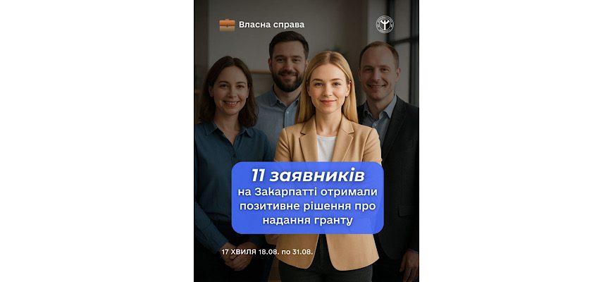 За підсумками 17-ї хвилі програми «Грант на власну справу», що тривала з 18 по 31 серпня 2025 року, 11 підприємців на Закарпатті отримали позитивні рішення щодо фінансування. Завдяки цьому буде створено 18 нових робочих місць, а загальна сума грантових коштів становитиме 2,4 млн грн.
