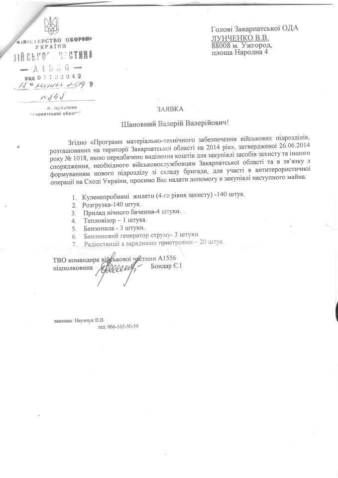 Ще одна заявка відправлена Закарпатському обласному військовому комісару Васильцюну І.П. з проханням погодити з комісією з питань бюджету Закарпатської обласної ради закупівлю потрібного обладнання.