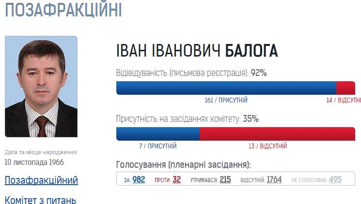 Водночас нардеп Павло Балога не подав жодного законопроекту і жодного запиту, Василь Петьовка – ні одного законопроекту, а Віктор Балога та Михайло Ланьо – не подавали депутатських запитів.