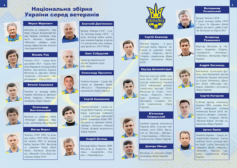 НЗУ серед ветеранів створена у лютому 2016-го року, але вже встигала зіграти з десяток матчів. До збірної входять легенди українського футболу: Артем Яшкін, закарпатець Василь Рац, Віталій Самойлов, Віктор Мороз, Анатолій Дем'яненко тощо.