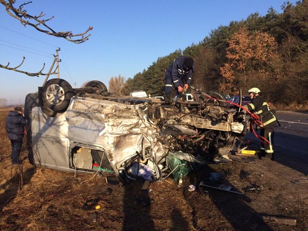 Там сталося лобове зіткнення двох бусів в результаті якого одне авто перевернулося на дах. Інший бус отримав тільки механічні пошкодження. У перекинутому авто перебували п'ять осіб, одна з них загинула, решта — госпіталізовані, повідомляє “Репортер”.