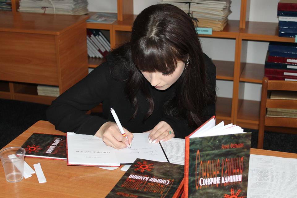 Минулого тижня в обласній біблотеці відбулася презентація дебютної прозової збірки Анни Фельцан “Сонячне каміння”. Модерувала зустріч з читачами літературознавець Олександра Ігнатович.
