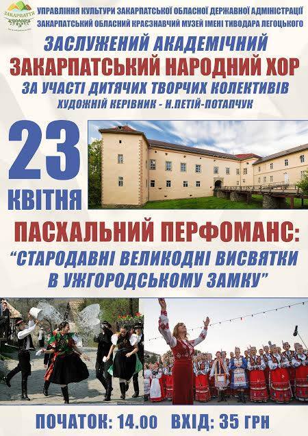 Як повідомила керівник хору Наталія Петій-Потапчук, 23 квітня (неділя після Великодня), о 14 годині, в Ужгородському замку всі охочі зможуть почути закарпатську хорову музику 19 та початку 20 століття.