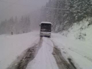 На засніженому перевалі на Прикарпатті застряг пасажирський автобус і фури (Фото)