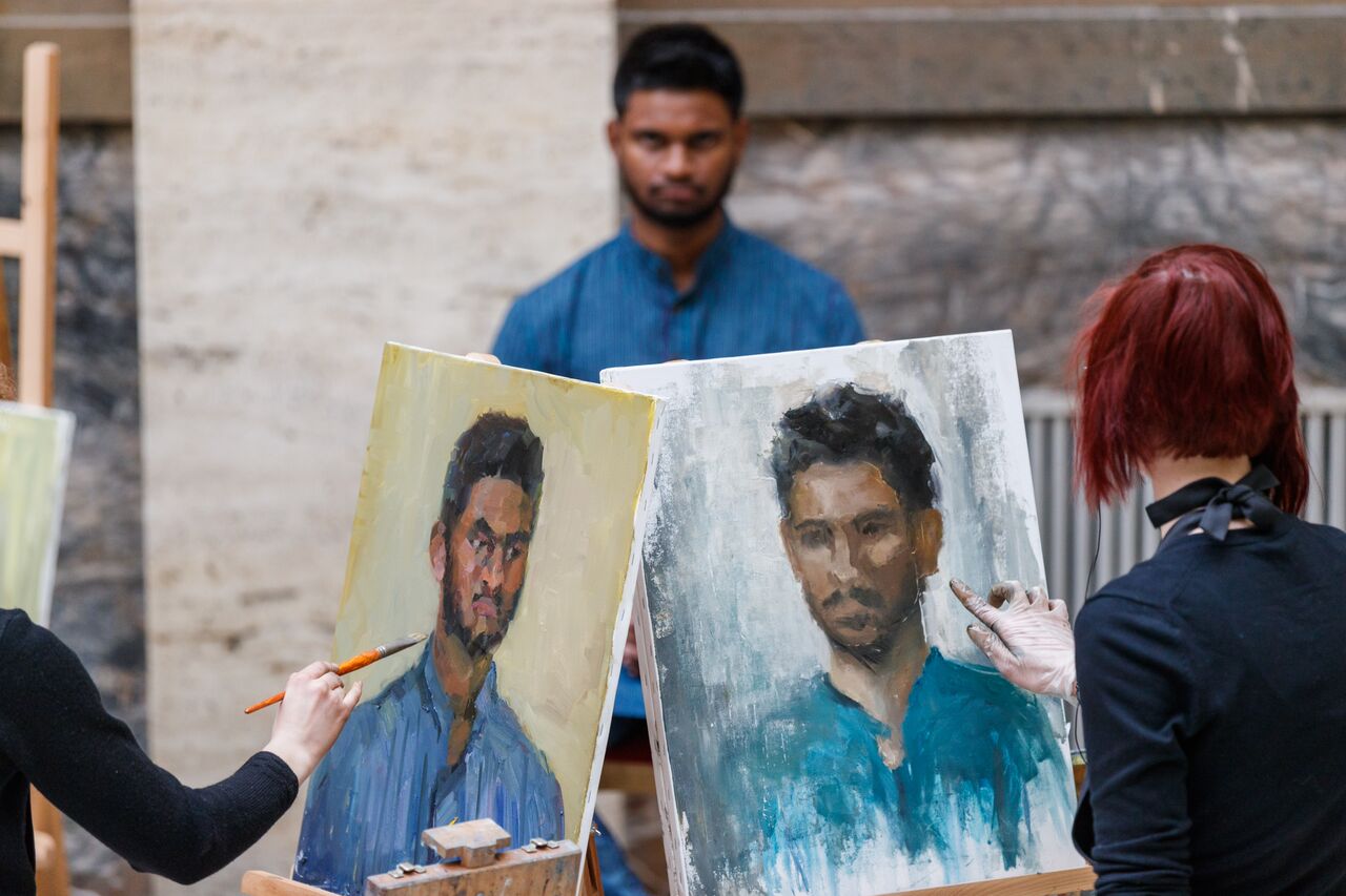 Вчора в рамках ІІ Всеукраїнського конкурсу з живопису “Срібний мольберт” молоді художники змагалися у кращому виконанні портрету. Писали всі разом в атріумі будівлі ОДА і обласної ради з натури. За роботою молодих митців мали змогу спостерігати всі охочі: як звичайні відвідувачі державної установи, так і митці. Як це відбувалося, можна бачити на світлинах, наданих оргкомітетом конкурсу.