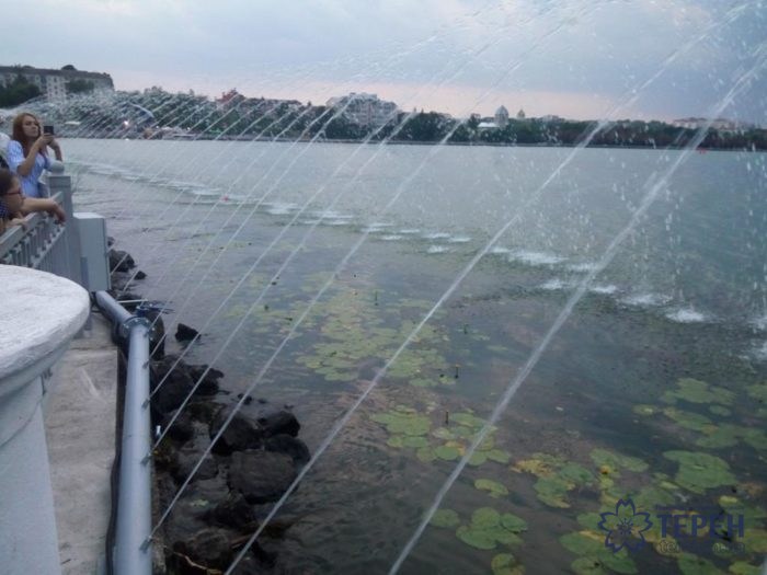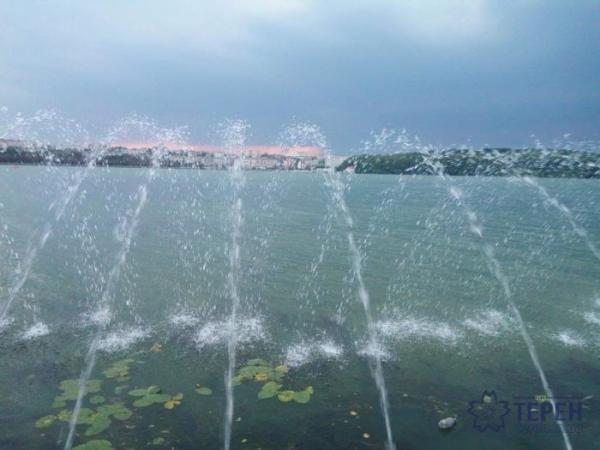 Наразі це лише половина аераційного фонтану, інформує Терен. Іншу частину облаштують до кінця вересня у внутрішній частині ставу поблизу острова Чайка.