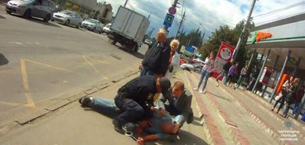 Напередодні, по обіді на вул. Руській у Чернівцях патрульні поліцейські побачили, що на протилежному від них боці дороги поблизу зупинки громадського транспорту одному з громадян стало погано. Він почав падати, а його супутник злякався та швидко рушив у невідомому напрямку.