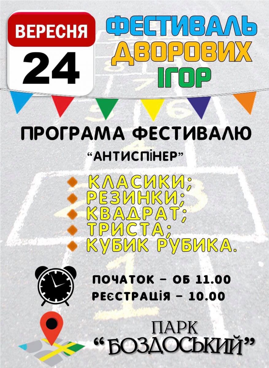 В Боздоському парку для дошкільнят зорганізують фестиваль дворових ігор “Антиспінер”