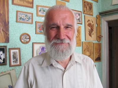 “Ще в шостому класі я захопився виробами з дерева, – розповідає майстер. – А батько віддав мене в музичну школу, купив піаніно. Та я втікав на гурток по дереву, і він нарешті змирився з моїм вибором. Сюжети здебільшого придумую сам. Багато робіт на біблійні та історичні теми. Ось Нестор Літописець, кобзар грає на кобзі. Відобразив на дереві прощання Ярославни з князем Ігорем. Роблю портрети людей. Ось моя сестра, коли їй було 18 років. А це Бріжіт Бардо і Софі Лорен. Нагорі портрети полководців: Суворова, Богдана Хмельницького, Кутузова… Колись навіть зробив Карла Маркса та Фрідріха Енгельса”.