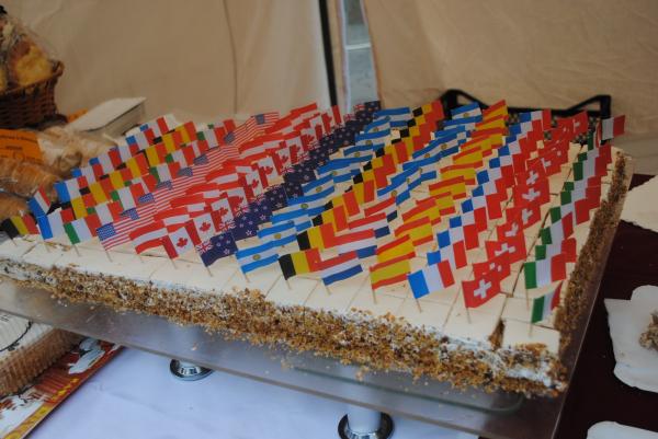 Прикрасили кожен зі шматочків прапорцями різних країн на знак того, що Ужгород є європейським містом.