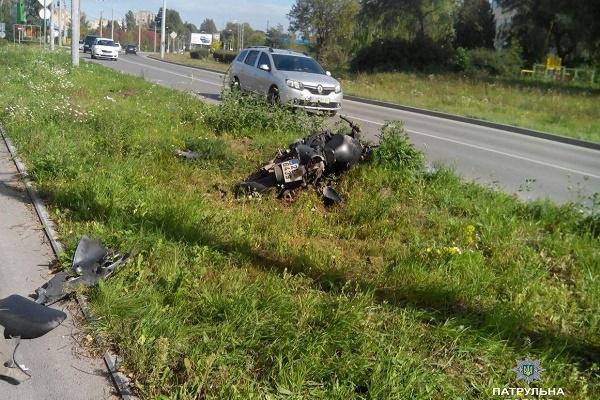 Сьогодні, 27 вересня, по обіді на вул. Текстильній у Тернополі водій мотоцикла не впорався з керуванням і заїхав у бордюр.