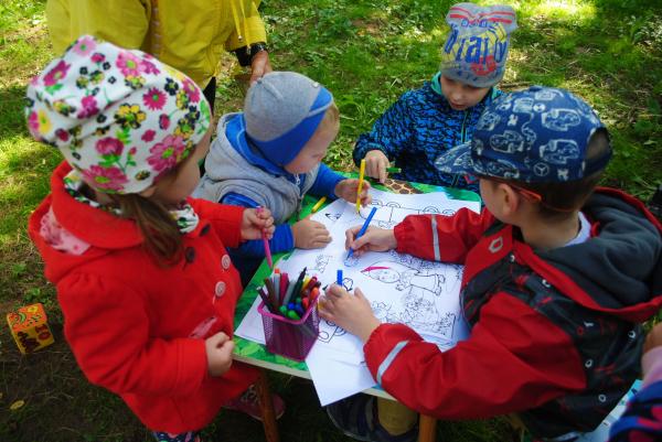 І чим тут тільки не розважають! З самого ранку найменші дітлахи малюють, танцюють, граються у пісочниці, діти старше трьох років роблять ляльки-мотанки, розфарбовують заготовки з дерева, керують роботами, роблять чудо песиків з волонтерами “Барбосу” та навіть вивчають мову жестів.