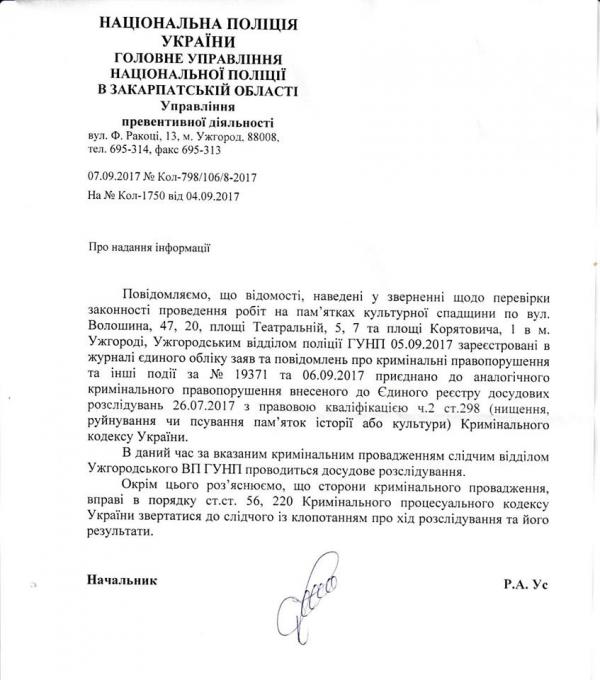 За фактами знищення/пошкодження кінотеатру “Ужгород”, будівлі ресторану “Червена Ружа” та комплексу “Корона” розпочато досудове розслідування – їх приєднано до кримінального провадження у справі руйнування будинку Фунданича. Такий результат приніс відкритий лист з підписами, адресований Генпрокуратурі та перенаправлений до Національної поліції, про це вчора, 30-го вересня, повідомили на сторінці Save Uzhhorod в мережі фейсбук.