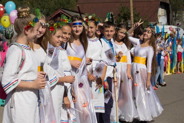 Свято розпочалося урочистою ходою: діти, посадовці, гості фестивалю у яскравих вишиванках пройшли вулицею села під супровід місцевих музик та звуки трембіт.