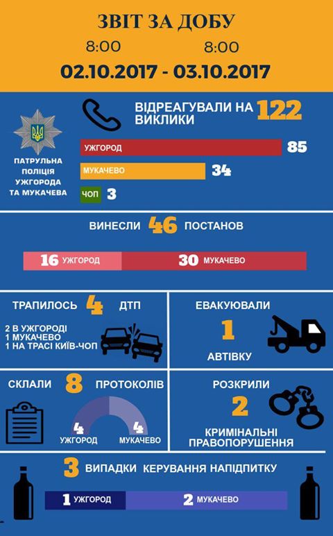 Головна » Події Чотири автоаварії, дві з яких – в обласному центрі (Інфографіка) Опубліковано: 15:20, 03.10.2017 Події Патрульна поліція Ужгорода та Мукачева інформує про події минулої доби. Деталі в інфографіці: