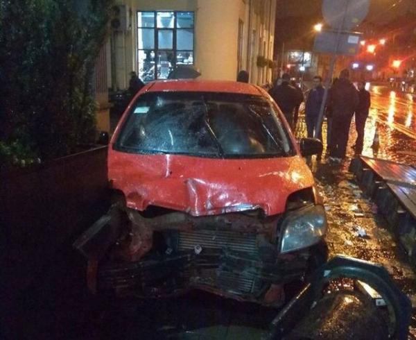 Водій “Chevrolet”, не впоравшись з керуванням, почав зносити все на своєму шляху: металеву огорожу, дорожні знаки, сміттєві баки, а потім влетів в клумби, встановлені за готелем, повідомляє “Сегодня”.
