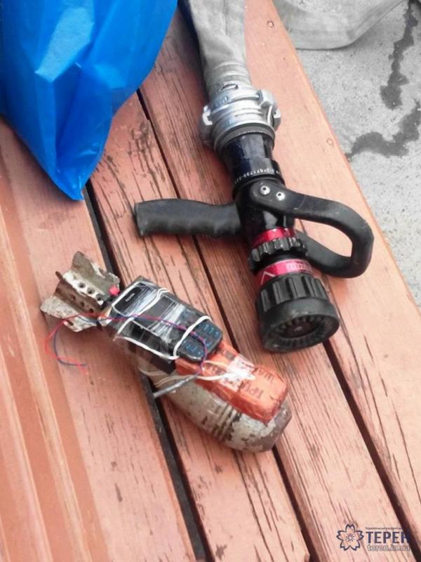 На місце терміново прибули працівники місцевого ДСНС і правоохоронці. Як виявилось, вміст пакету був дійсно небезпечним для життя і здоров'я пасажирів – рятувальники вилучили протипіхотну міну 82 калібру. До того ж, до снаряду був примотаний мобільний телефон, повідомляє “Терен”.