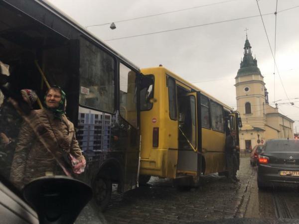 У центрі Львова на вул. Городоцькій не розминулися маршрутки.