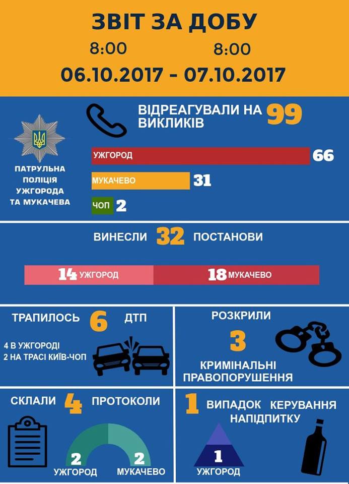 Патрульна поліція Ужгорода та Мукачева інформує про події минулої доби. Деталі в Інфографіці: