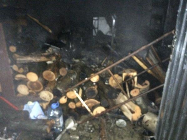 Внаслідок пожежі знищенопокрівлю на площі 30 кв. м та дрова, що знаходились у середині споруди. Також пошкоджено бетономішалку.