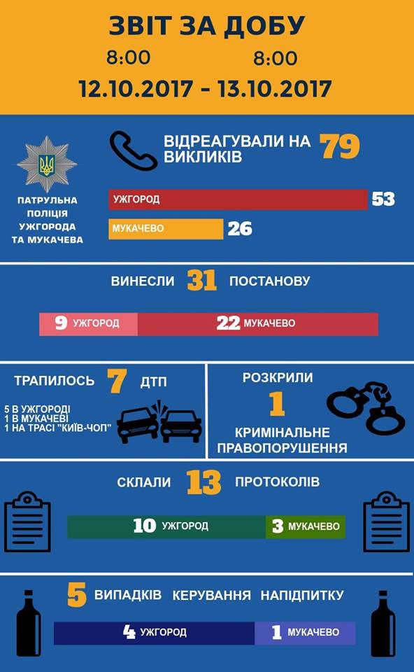 Патрульна поліція Ужгорода та Мукачева інформує про події минулої доби. Деталі в інфографіці: