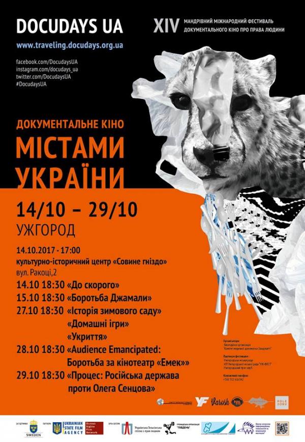 Сьогодні, 29 жовтня, в ужгородському комплексі “Совине гніздо” завершиться XIV Мандрівний міжнародний фестиваль документального кіно про права людини “Docudays UA”. Останній фільм, який зможуть побачити ужгородці, розкаже про боротьбу українського режисера Олега Сенцова. Стрічка “Процес. Російська держава проти Олега Сенцова” присвячена історії судового процесу над режисером, ув'язненим у Росії. Початок перегляду – о 18.30. Вхід – безкоштовний.