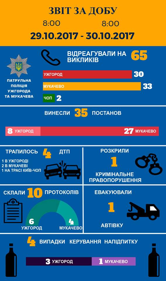 Патрульна поліція Ужгорода та Мукачева інформує про події минулої доби. Деталі в інфографіці: