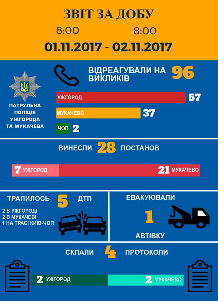 Головна » Події Ужгородські патрульні вчора 57 разів виїжджали на виклики містян (Інфографіка) Опубліковано: 15:15, 02.11.2017 Події Патрульна поліція Ужгорода та Мукачева інформує про події минулої доби. Більш деталніше в інфографіці: