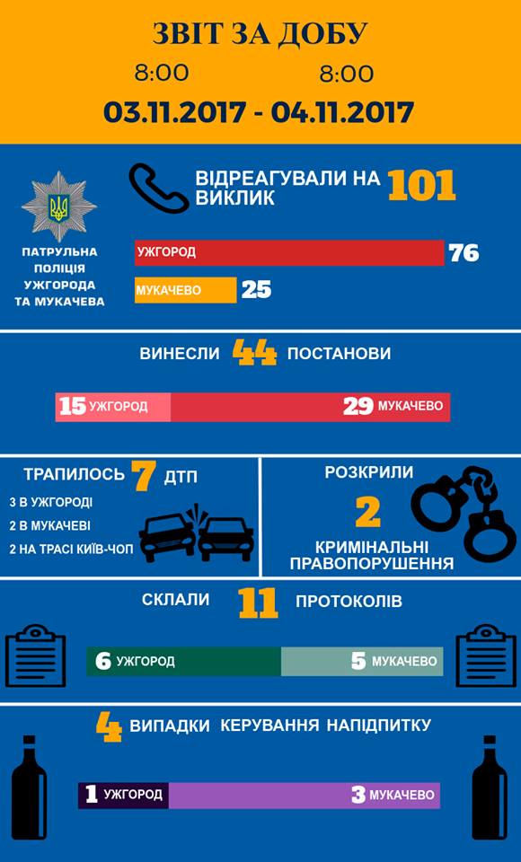 Головна » Події 7 автоаварій, з них 3 – в обласному центрі (Інфографіка) Опубліковано: 13:00, 04.11.2017 Події Патрульна поліція Ужгорода та Мукачева інформує про події минулого дня: