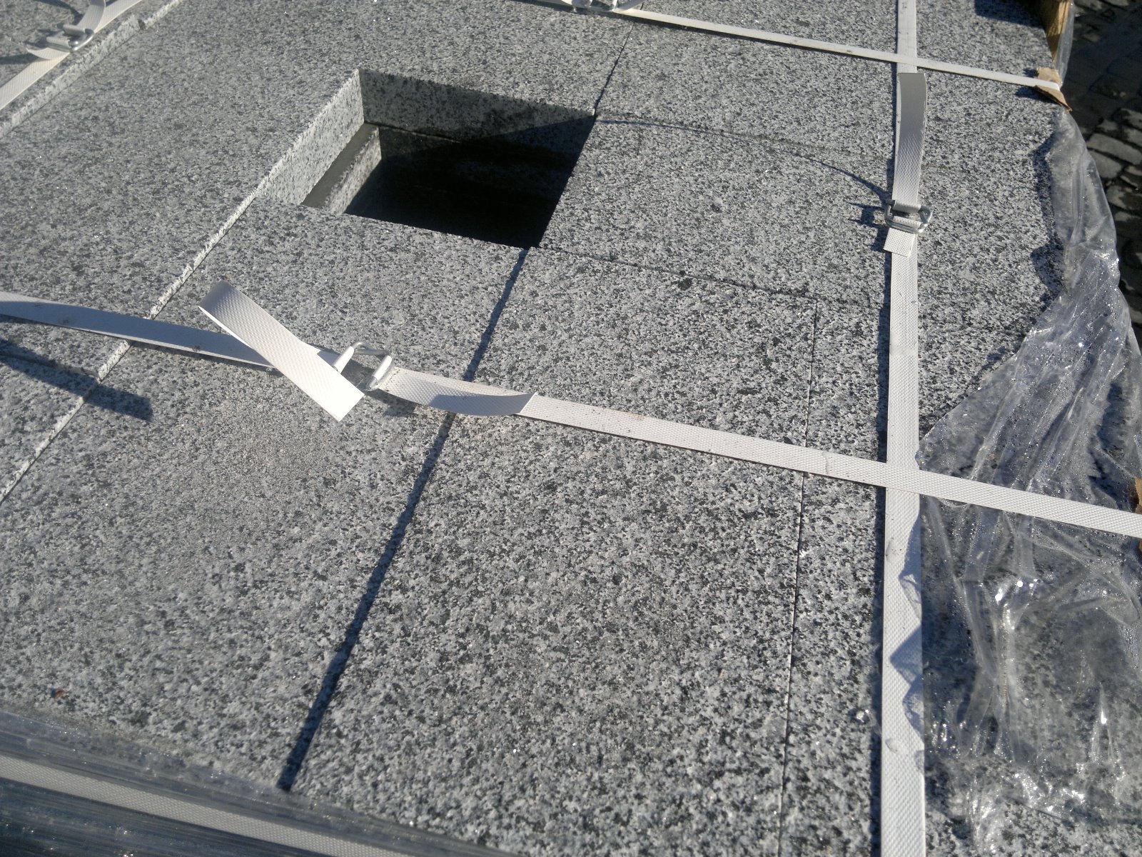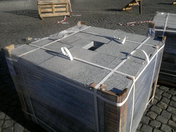 Плитка, якою моститимуть площу наново – це природній граніт розміром 20х40. І наразі стоси плитки вже розвантажені на узбіччі площі.
