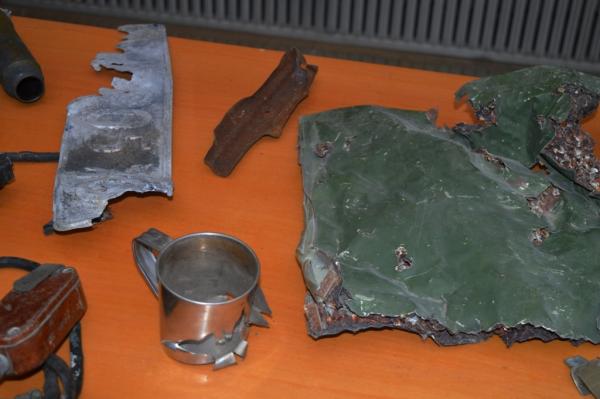 Серед них осколки від снаряду крупнокаліберної артилерії, залишки від снаряду реактивної системи залпового вогню “Град” тощо. Частина експонатів надана учасниками АТО, котрі зараз працюють в облдержадміністрації. Відвідати виставку може кожен охочий.