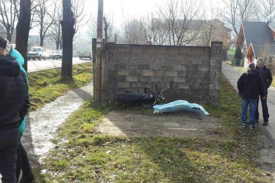 Правоохоронці з'ясували, що близько 11.50 у селищі Ясіня на вулиці Миру, на автодорозі сполученням Мукачево-Рогатин 37-річний водій мотоцикла “Мустанг” не впорався з керуванням та в'їхав у бетонну огорожу. Чоловік виявився місцевим мешканцем. Він їхав на незареєстрованому транспортному засобі без шолома. Від отриманих травм мотоцикліст помер на місці, повідомляє Відділ комунікації поліції Закарпатської області.