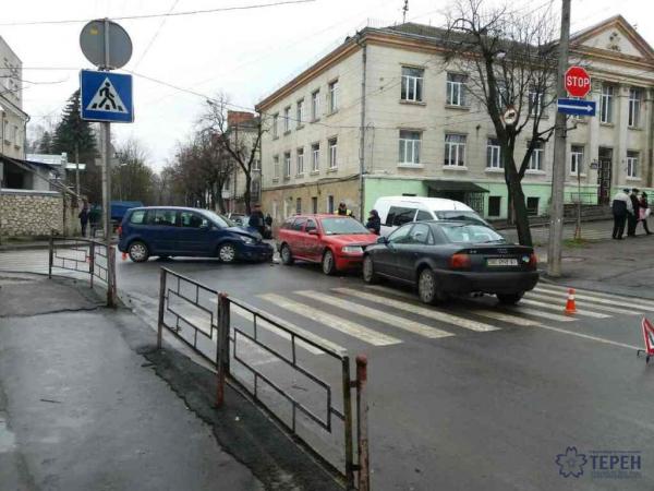 Три автівки зіткнулись на розі вулиць Паращука — Танцорова у Тернополі. ДТП трапилась сьогодні, 28 листопада, близько полудня.