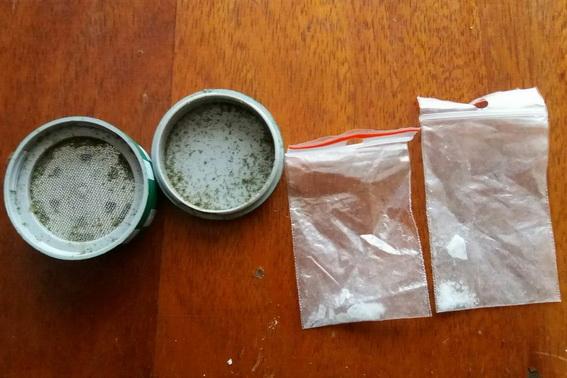На запитання, чи має він якісь заборонені предмети, юнак витягнув із кишені штанів поліетиленові пакетики з речовинами, схожими на марихуану та метамфетамін. А в ході огляду автомобіля поліцейські знайшли ще марихуану, спеціальний пристрій для її подрібнення, а також кілька медичних пробірок, перев'язаних клейкою стрічкою.