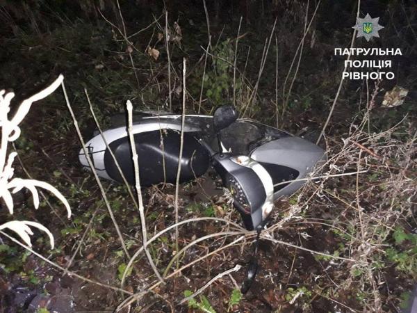 Минулої ночі на вул. Курчатова у Рівному патрульні помітили мопед, на якому не було номерного знаку, а водій рухався без мотошолома. Патрульні вирішили зупинити транспортний засіб, однак водій з'їхав з асфальтової дороги на ґрунтову і пришвидшив рух.