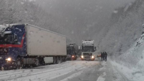 Інтенсивний сніг, що почався на Закарпатті в неділю вранці, значно ускладнив рух автотранспорту через чотири перевали на адміністративній межі області. Найскладніша ситуація на Абранському перевалі у Воловецькому районі (траса “Київ – Чоп”) – основній транспортній артерії для вантажних автомобілів. Через мокрий сніг фури не можуть подолати підйом, станом на 17-ту годину на перевалі утворився трикілометровий затор.