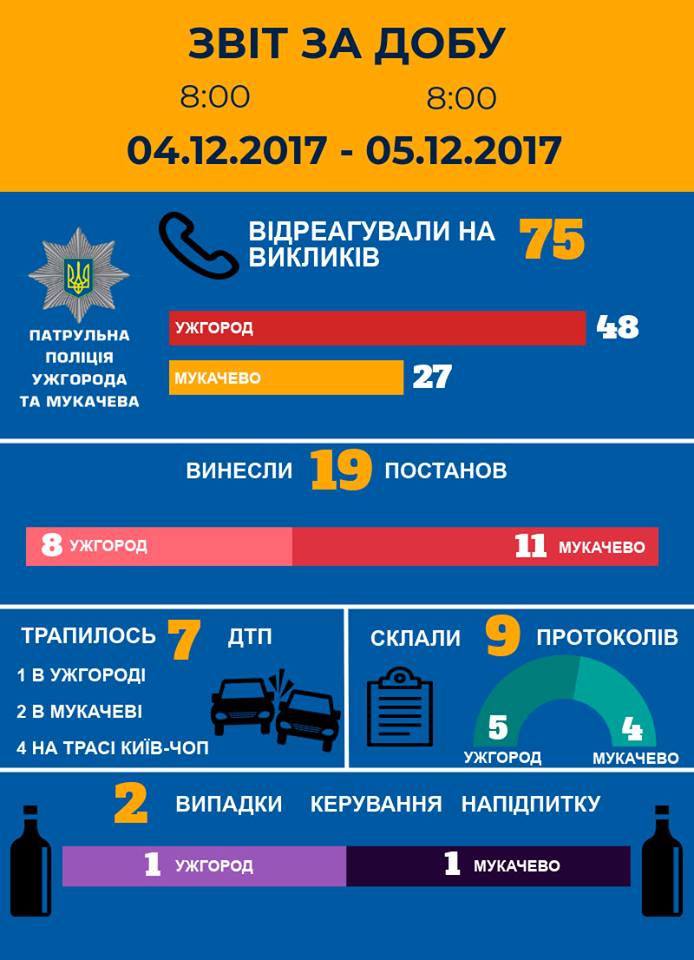 Головна » Події 7 автоаварій, більше половини з них – на автотрасі Київ-Чоп (Інфографіка) Опубліковано: 18:48, 05.12.2017 Події Патрульна поліція Ужгорода та Мукачева інформує про події минулої доби. Деталі в інфографіці:
