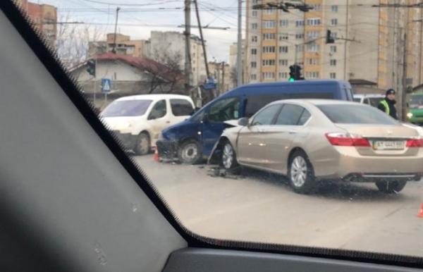 Сьогодні, 25 грудня, на розі в. Галицька — Тролейбусна в Івано-Франківську водій легковика врізався у мінівен таксі.