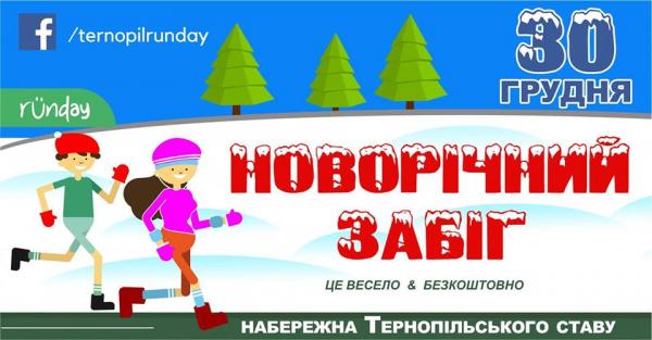 Тернопільський міський центр фізичного здоров'я спільно з Ternopil runday організовує костюмований новорічний забіг з призами і подарунками.