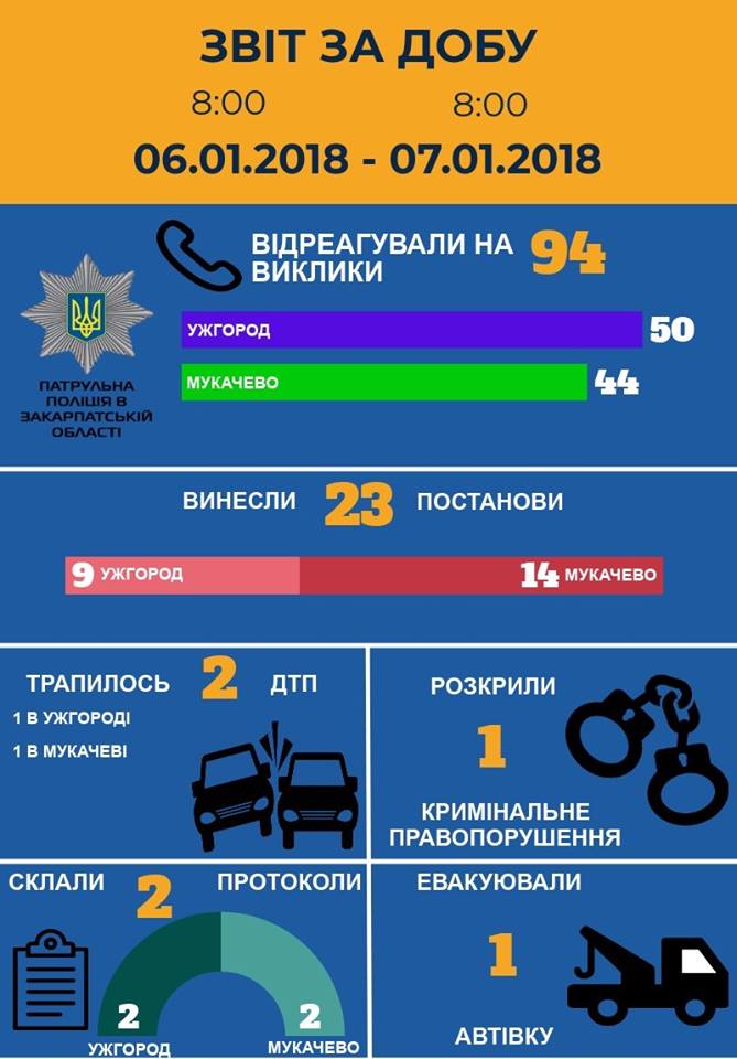 Закарпатські патрульні відреагували на 94 виклики (Інфографіка)