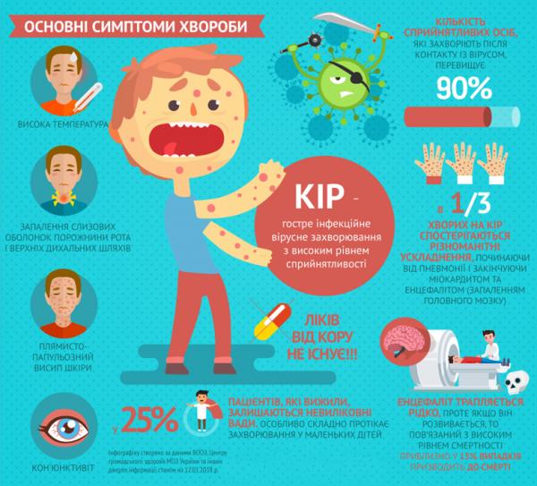З початку 2018 року в області за екстреними повідомленнями вже зареєстровано 242 захворювання кором переважно у не щеплених осіб (70% всіх захворілих). Щоденно надходить інформація про нові випадки. Найбільше хворіють кором в Ужгородському, Тячівському, Виноградівському районах та м.Ужгород.