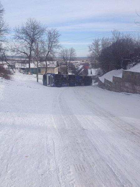 Сьогодні, 24 січня, в Острозі на Рівненщині на вул. Красногірській перекинувся вантажний автомобіль.