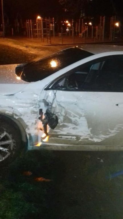 За дві години цей же автомобіль скоїв ДТП на вул. Винниченка. Патрульним водій розповів, що не впорався з кермуванням і врізався у припаркований автомобіль та злетів з дороги. В результаті автомобіль опинився біля скейт-майданчика у сквері. Машина понищила дерева, газони і розтрощила лавочку.