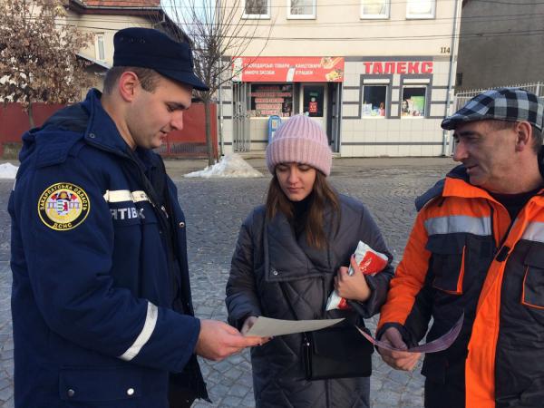 Майже аналогічний профілактичний захід відбувся і в місті Мукачево. Тут представники екстрених служб вирушили містом для того, аби роз'яснити правила безпеки життєдіяльності безпосередньо самим містянам. Окрім спілкування громадянам було роздано листівки, в яких детально описано всі правила, дотримання яких дозволить зробити своє життя більш безпечним. Громадяни, до яких звертались представники служб “101” та “104”, уважно слухали їх та обіцяли бути уважнішими до власної безпеки та виконувати усі почуті настанови.
