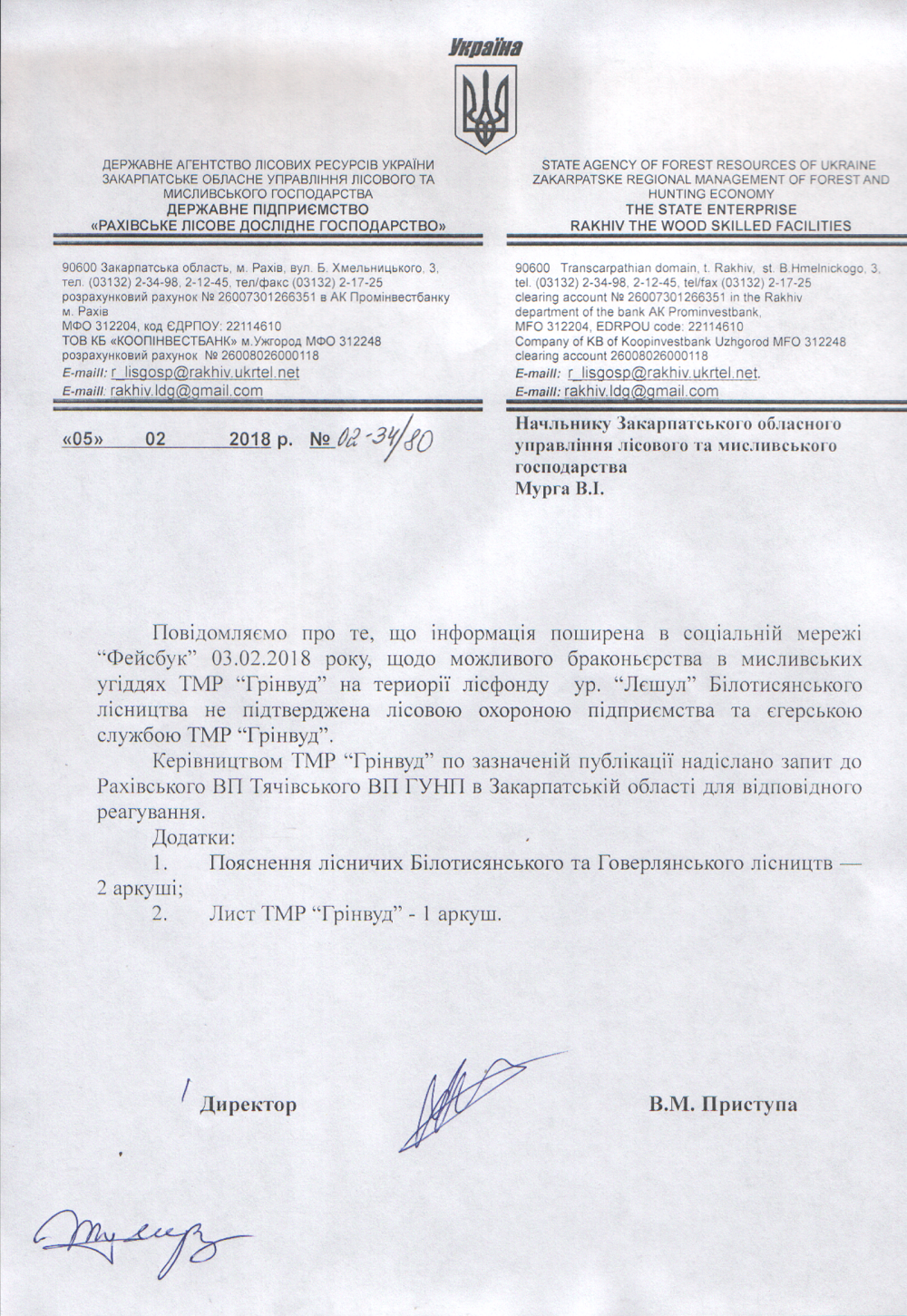 Закарпатське обласне управління лісового та мисливського господарства офіційно повідомляє по ситуації, яка була днями опублікована в соціальній мережі facebook громадянином Рахівщини М.Кокіш-Мельником: