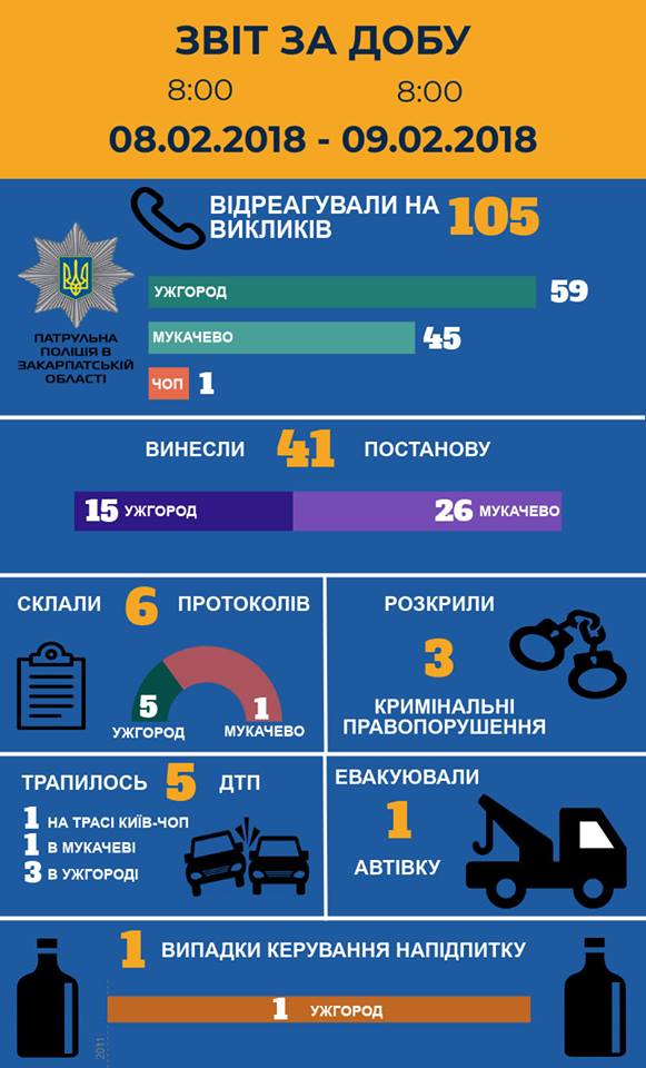 Про це інформує Патрульна поліція Закарпатської області у короткому звіті за минулу добу.