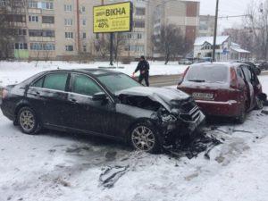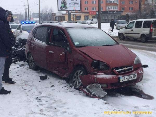Легковики Mercedes і Chevrolet зіткнулись сьогодні, 9 лютого, вранці на вул. Конякіна у Луцьку.