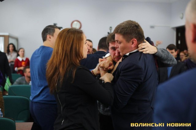 Голова фракції “Народний контроль” Павло Данильчук зірвав сесію Луцької міськради, яка мала розпочатися ще о 10 годині сьогодні, 28 лютого. У зал він приніс гучномовець та увімкнув музику. У залі спровокував шарпанину між присутніми.